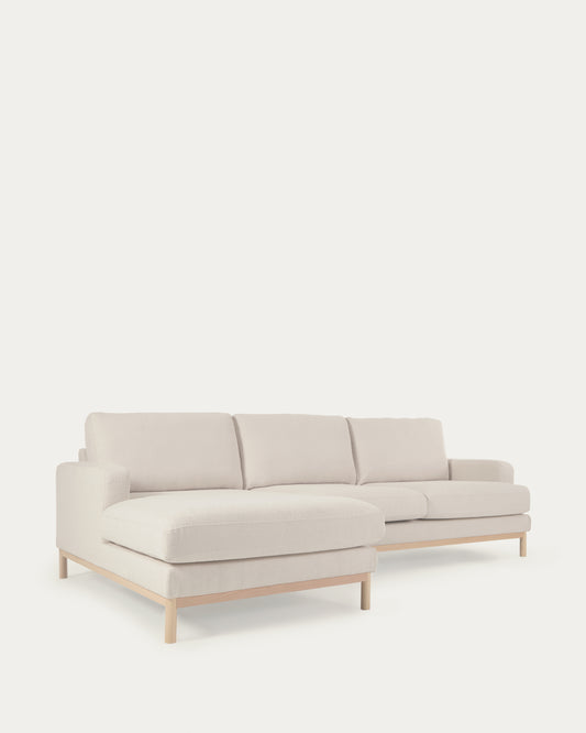 Canapé Mihaela 3 places avec méridienne à gauche en micro bouclette blanche 264 cm FSC Mix Credit