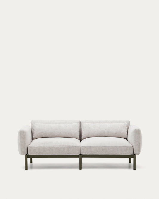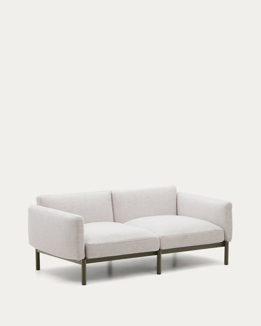 • Canapé modulable d’extérieur Sorells 2 places tapissé en beige et structure en aluminium vert
