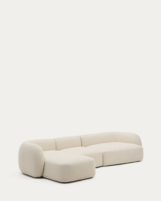 Canapé modulable Martina 4 places en chenille avec méridienne gauche couleur écrue 377 cm