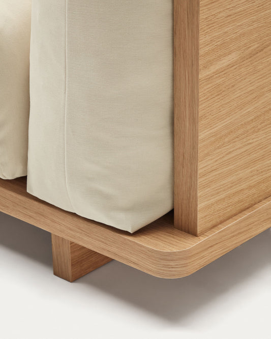 - Structure en contreplaqué de chêne finition naturelle avec dossier, assise et accoudoirs déhoussables.
