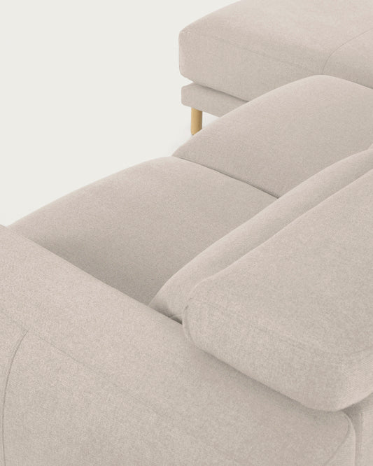 - Canapé couleur blanc cassé avec appuie-têtes inclinables et sièges coulissants.