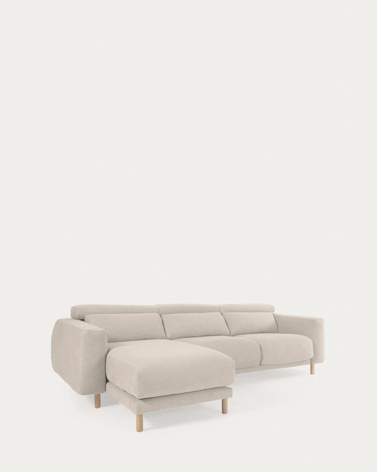Canapé Singa 3 places avec méridienne gauche, appui-tête inclinable et siège extensible blanc 296 cm