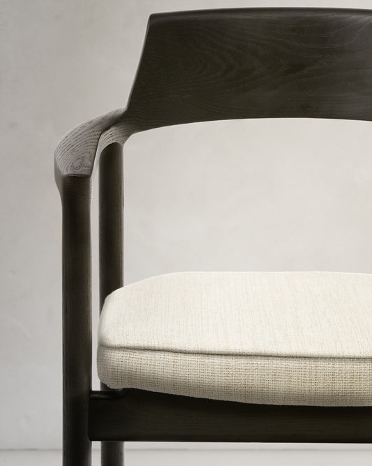 Chaise Alocs tissu chenille beige déhoussable bois de chêne finition noire FSC Mix Credit