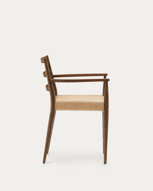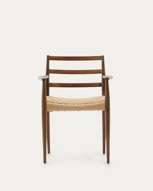 Chaise Analy avec accoudoirs en bois de chêne, finition noyer assise en corde FSC 100 %
