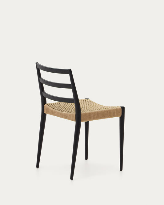 Chaise Analy en bois de chêne avec finition noire et siège en corde FSC 100 %