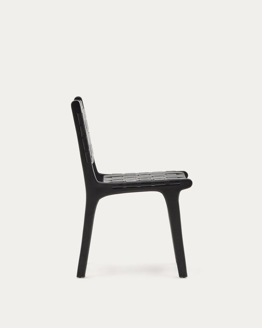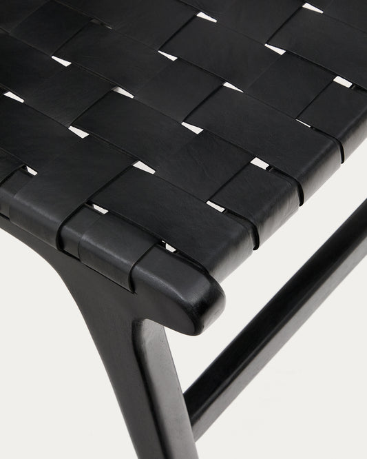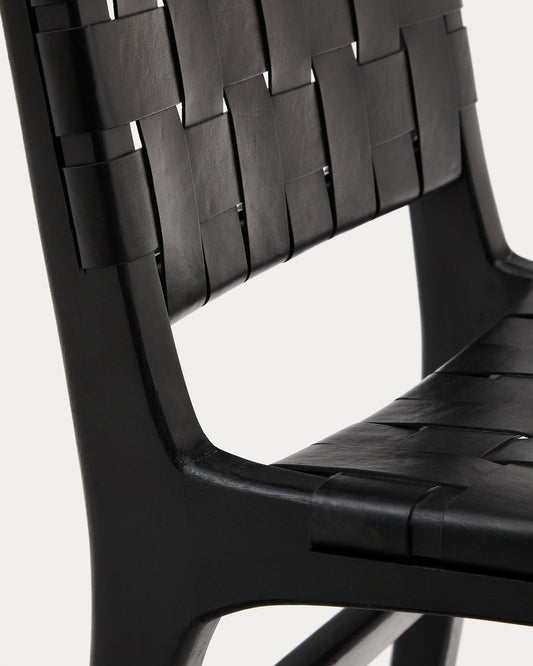 Chaise Calixta en cuir et bois de acajou avec finition noire