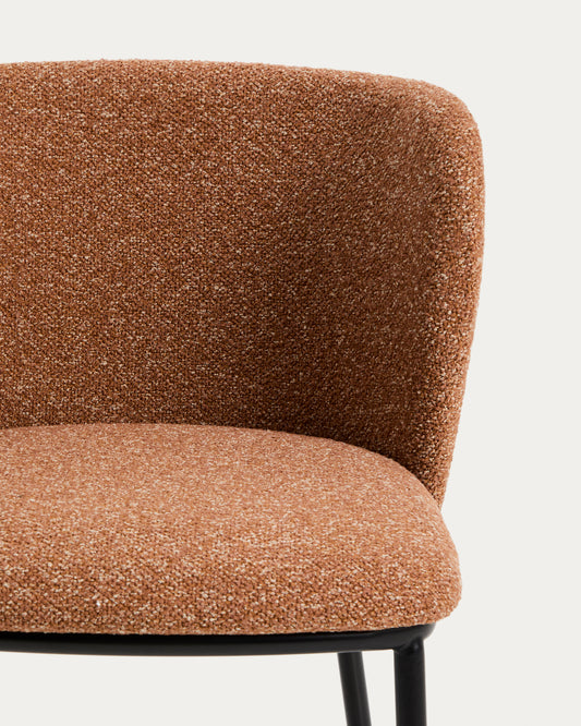 Chaise Ciselia en chenille épaisse terracotta et pieds en acier avec finition noire FSC Mix Credit