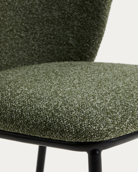 Chaise Ciselia en chenille épaisse vert foncé et pieds en acier avec finition noire FSC Mix Credit