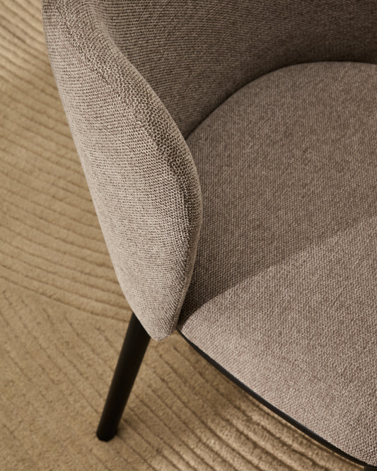 Chaise Ciselia en chenille marron clair et pieds en acier avec finition noire FSC Mix Credit