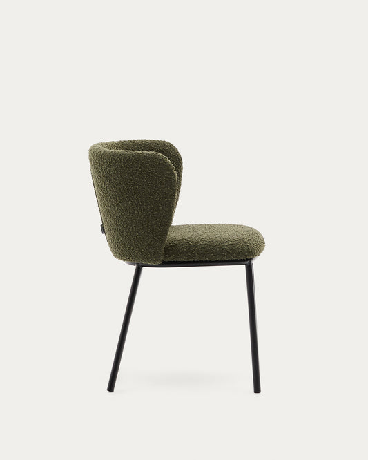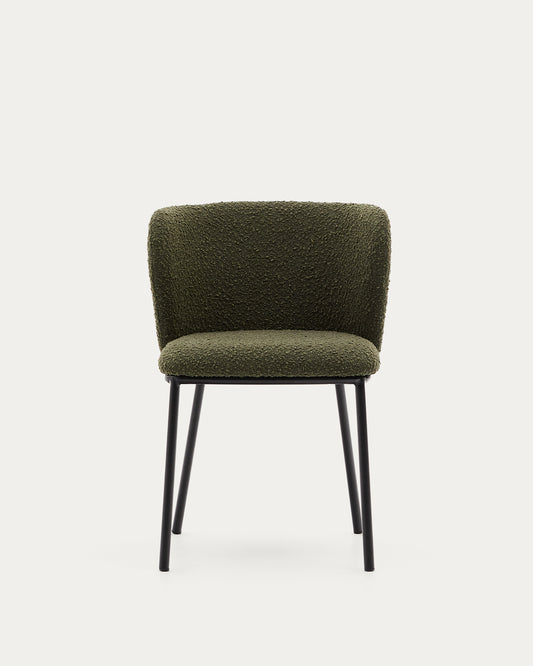Chaise Ciselia en tissu effet bouclette vert et et noir beige FSC Mix Credit