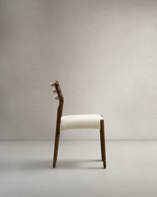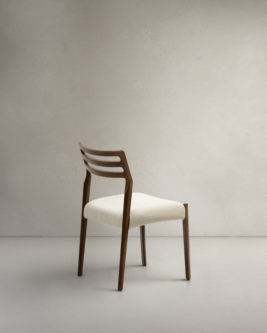 Chaise Cudia tissu chenille beige déhoussable bois de chêne finition noyer FSC Mix Credit