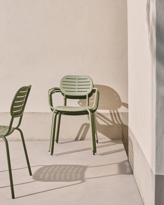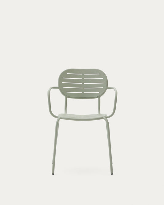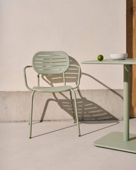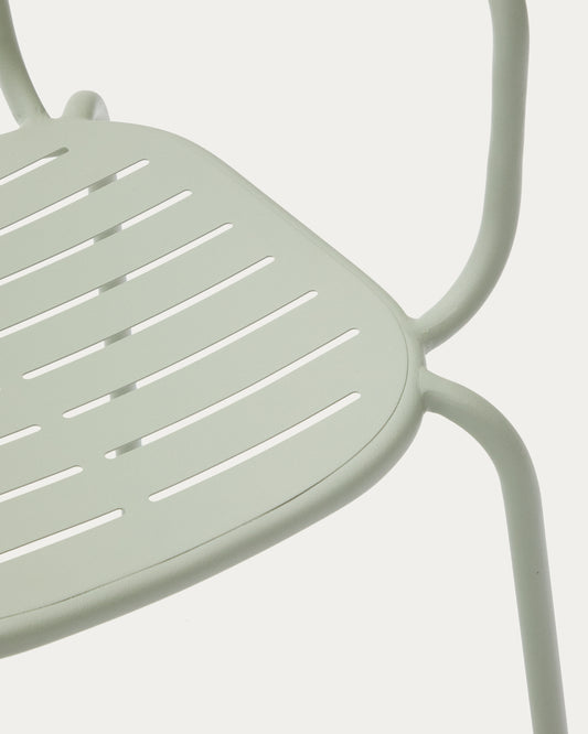 Chaise d’extérieur empilable avec accoudoirs Brai en acier galvanisé turquoise