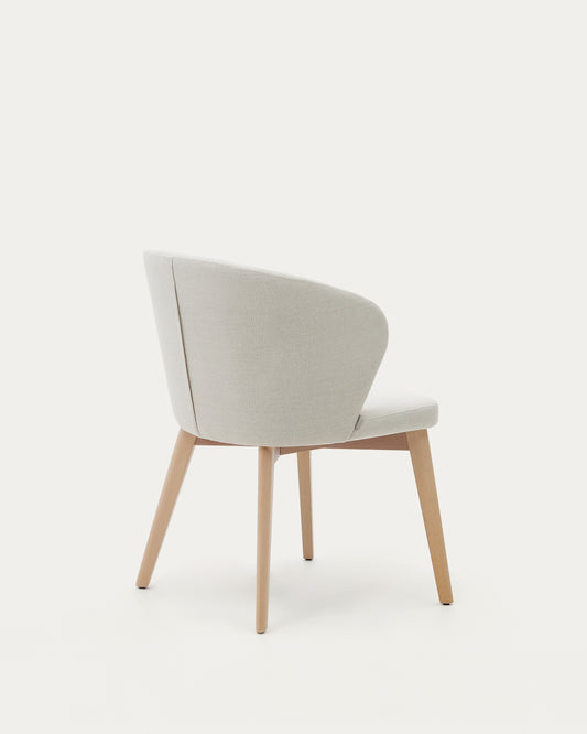 Chaise Darice en tissu chenille beige et bois de hêtre, finition naturelle FSC 100 %