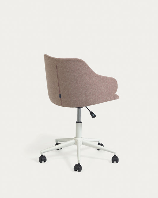 Chaise de bureau Einara rose et pieds en acier blanc mat