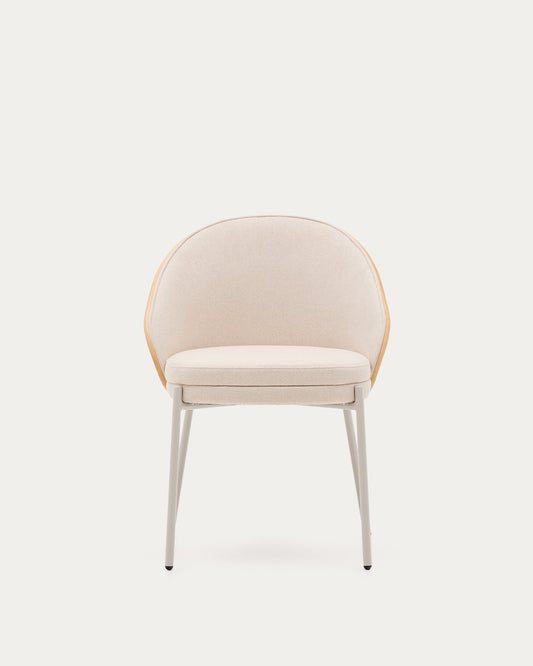Chaise Eamy en chenille beige, placage de frêne avec finition naturelle et métal beige
