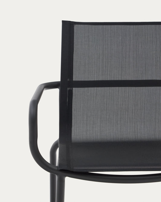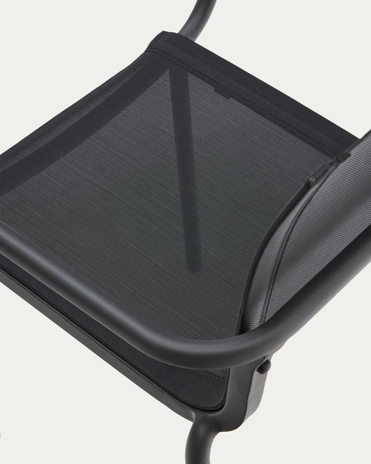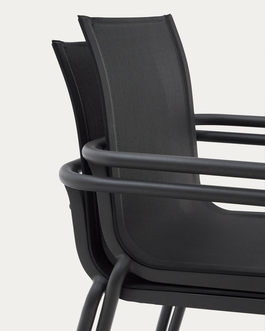 - Chaise empilable avec structure en aluminium et assise et dossier en texteline, finition gris foncé.