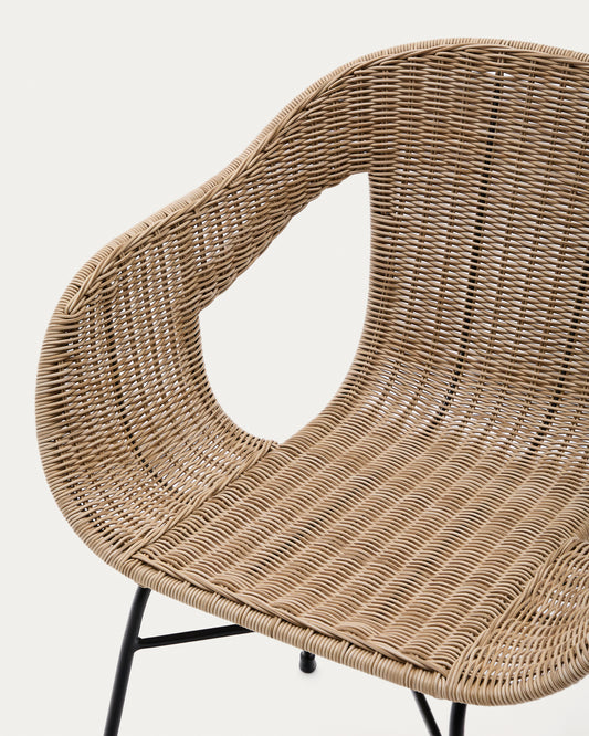 - Dossier et assise en rotin synthétique tressé à la main.