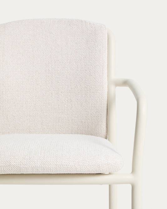 Chaise empilable d’extérieur Linosa en aluminium écru avec coussin beige
