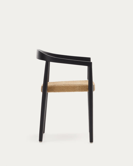 Chaise empilable Ydalia en teck, finition noire et corde de rotin synthétique
