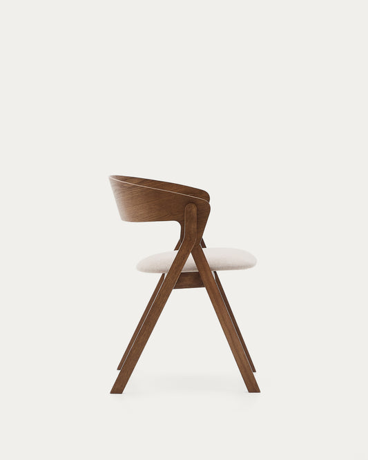 Chaise Godia en placage de frêne finition wengé et tissu chenille beige