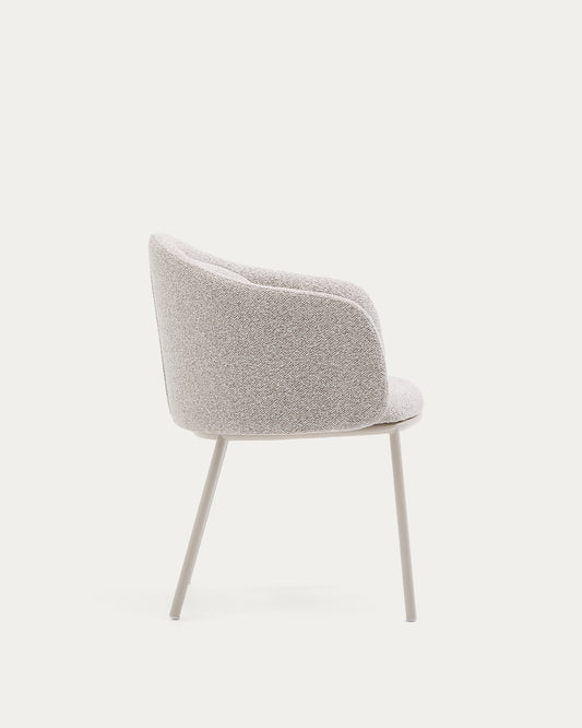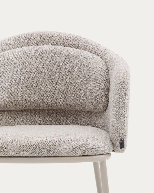 Chaise Idaira en tissu chenille épais et pieds en acier beige FSC Mix Credit