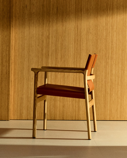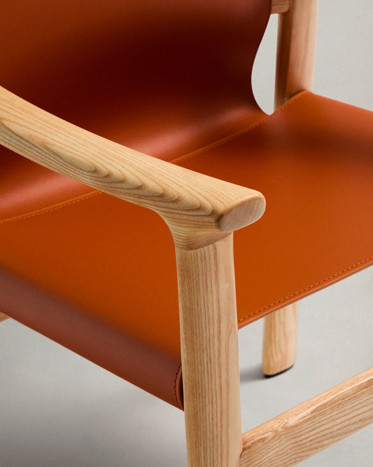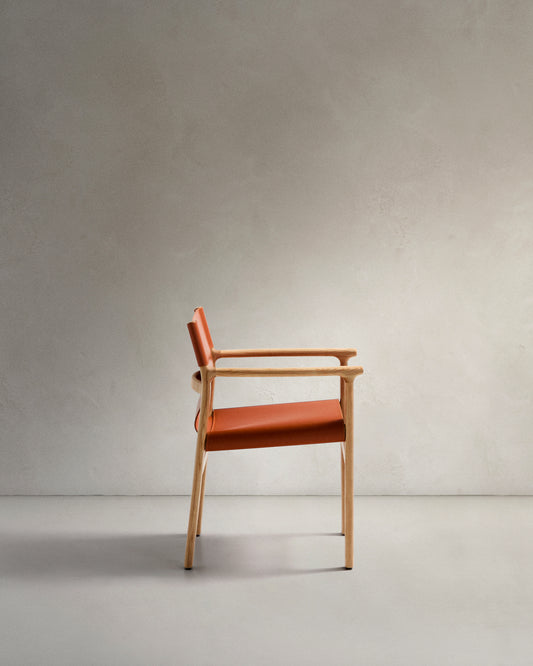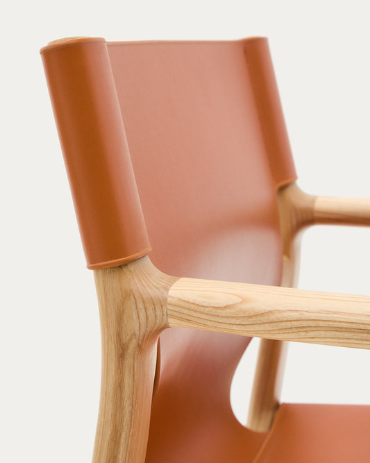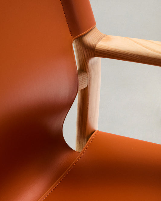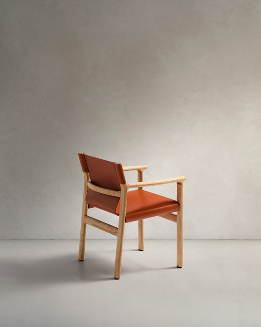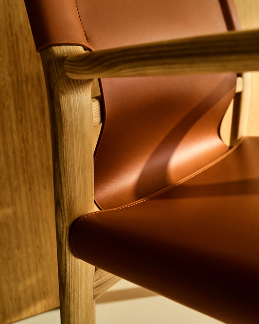 Chaise Jan en fibres de cuir recyclé marron clair et bois de frêne avec finition ton naturel FSC 100 %