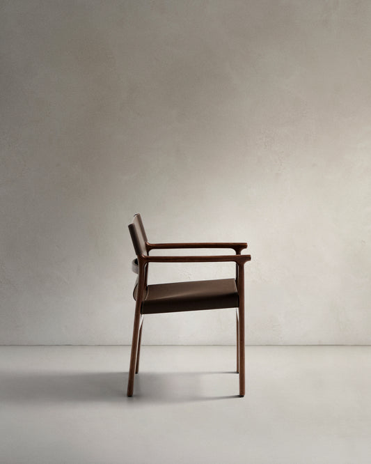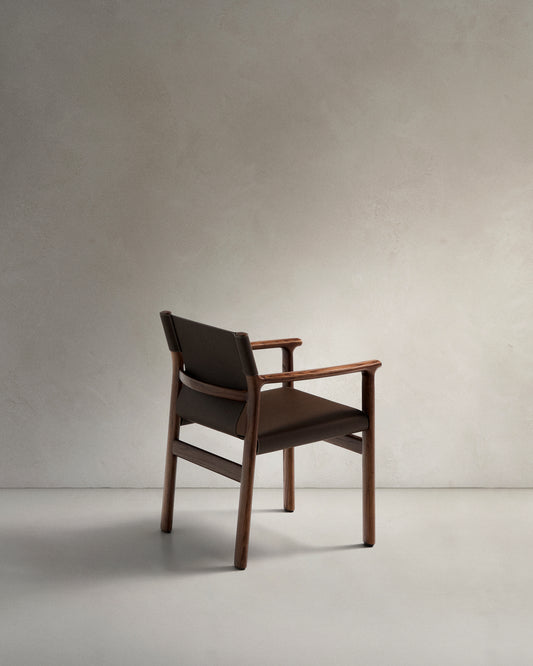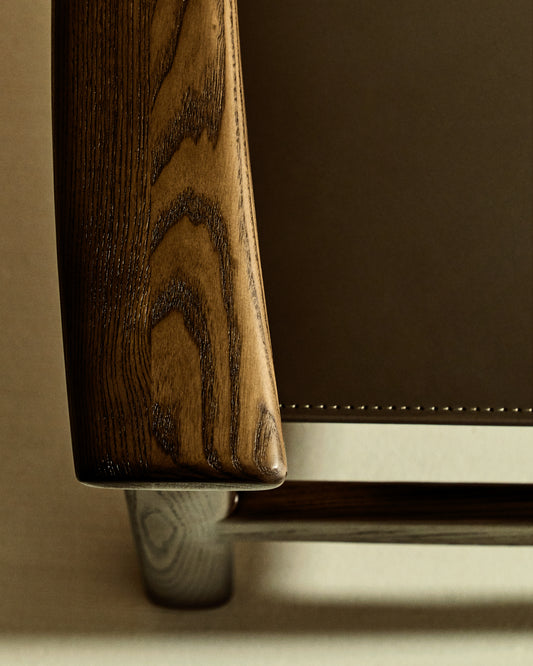 Chaise Jan en fibres de cuir recyclé marron foncé et bois de frêne avec finition ton noyer FSC 100 %
