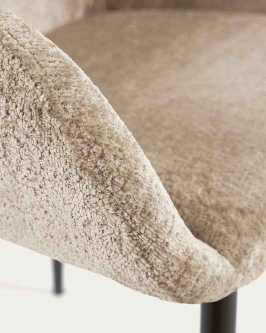 Chaise Konna en chenille beige avec pieds en acier peint noir