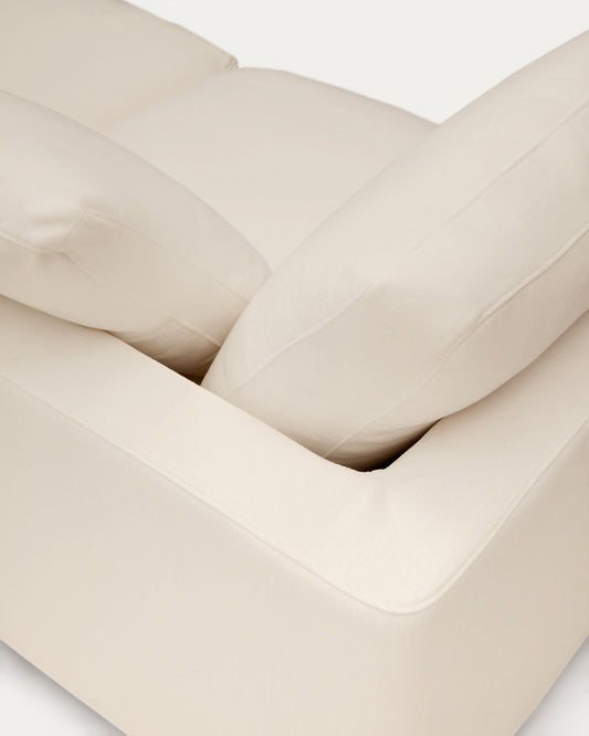 - Assise moelleuse grâce aux coussins garnis de fibre vierge à effet duvet 100 % siliconée et d’un noyau de mousse d’une densité de 30 kg/m³. Les sièges, les dossiers et les coussins sont déhoussables et réversibles.