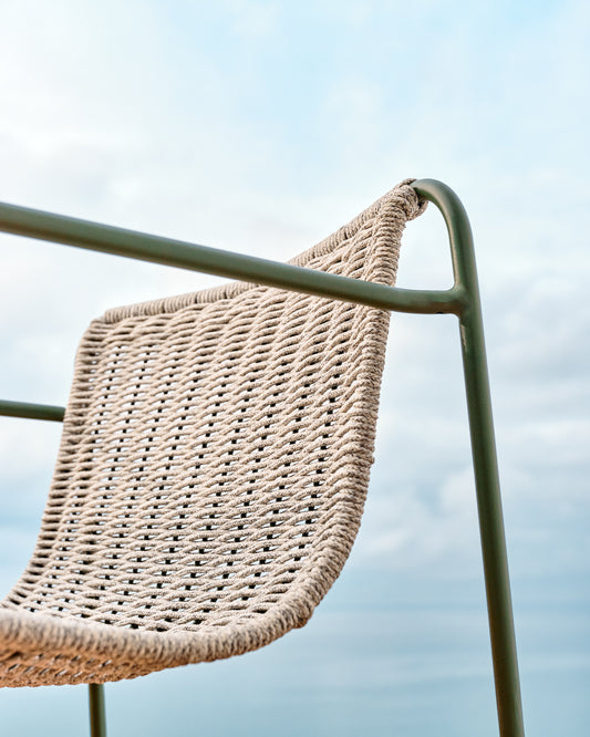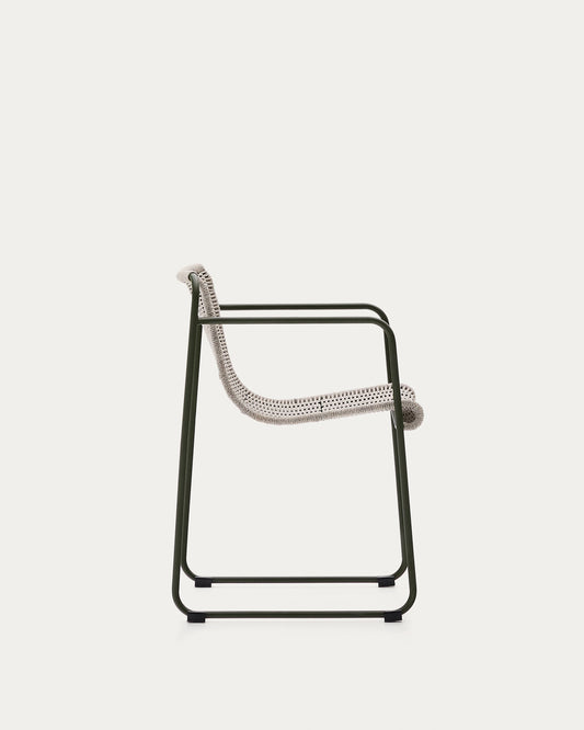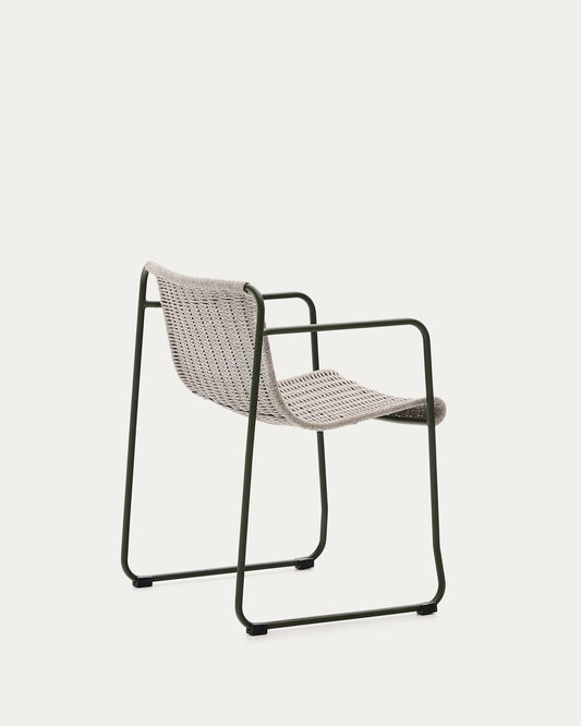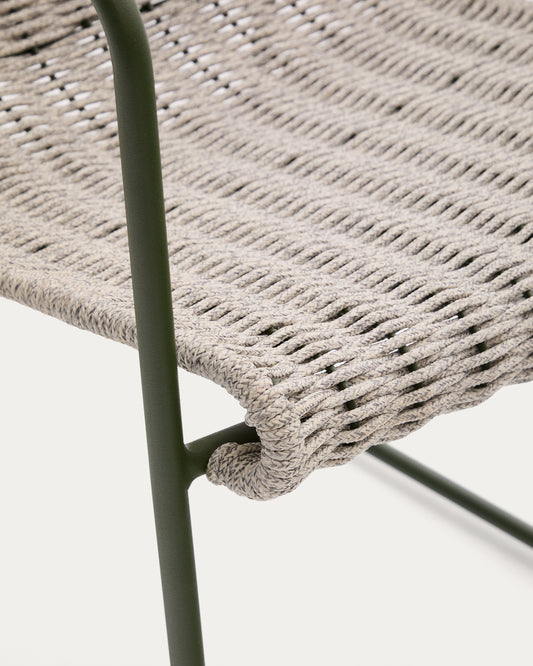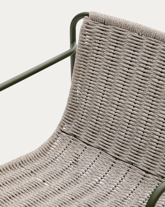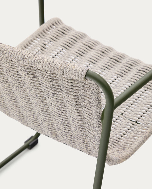 Chaise Maurina en acier galvanisé vert et corde écrue et grise