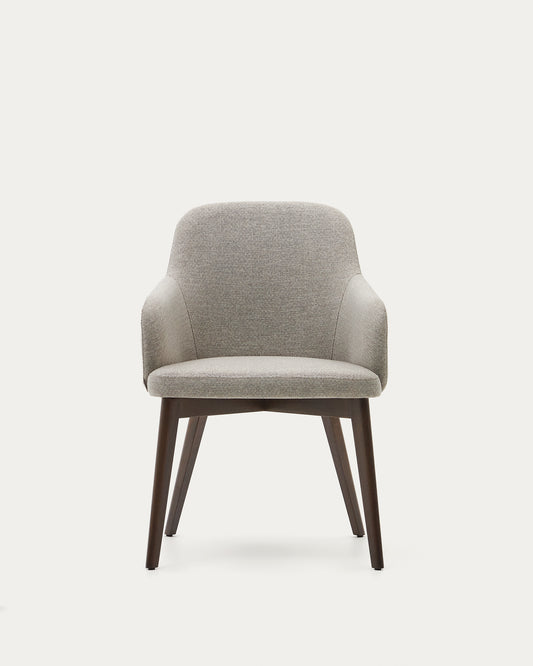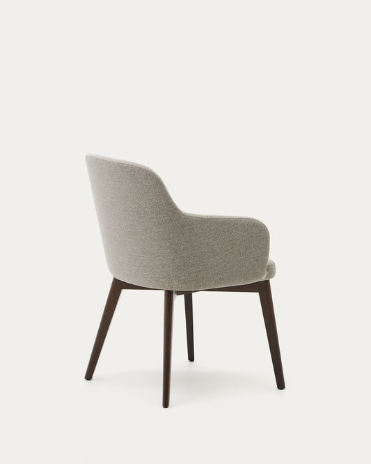 Chaise Nelida en tissu chenille marron et bois de hêtre, finition noyer FSC 100 %