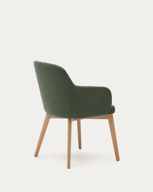 Chaise Nelida en tissu chenille vert et bois de hêtre, finition naturelle FSC 100 %