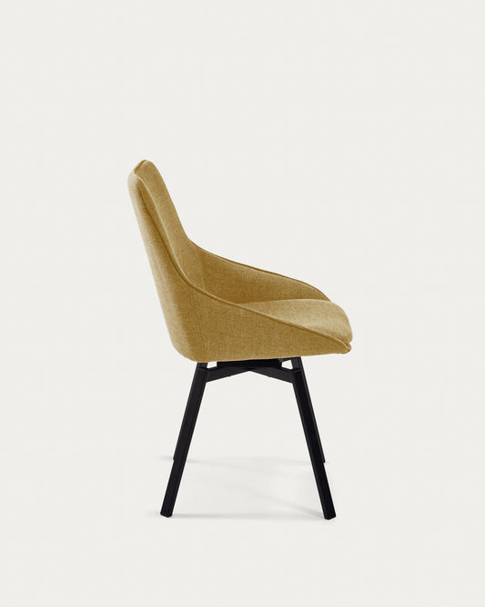 Chaise pivotante Jenna jaune moutarde et pieds en acier noir FSC 100%
