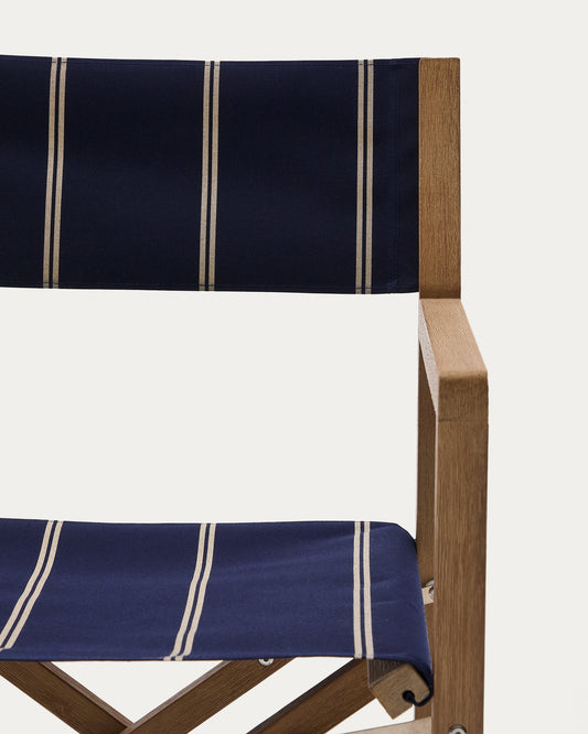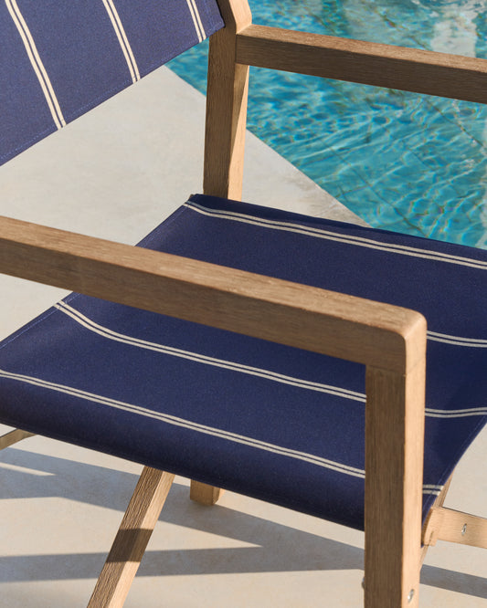 Chaise pliable d’extérieur Vilara rayures bleues et beiges en bois d’acacia FSC 100 %