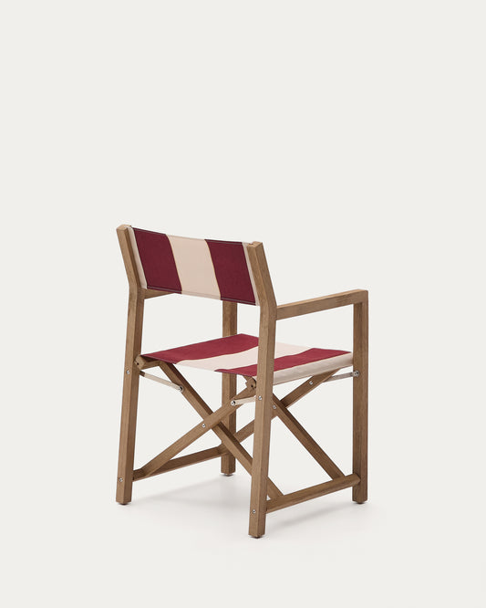 Chaise pliable d’extérieur Vilara rayures grenat et beiges en bois d’acacia FSC 100 %