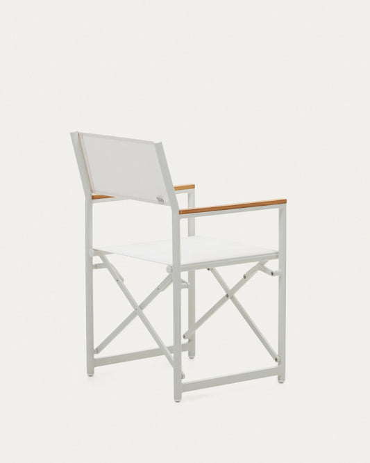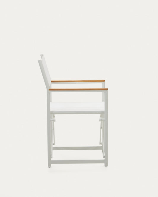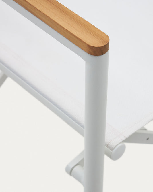 Chaise pliante 100% d'extérieur Llado aluminium blanc et accoudoirs en bois de teck