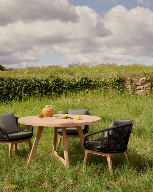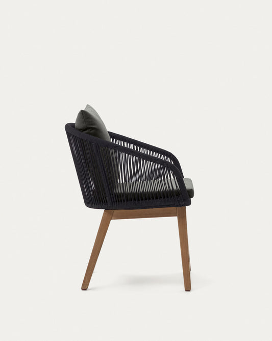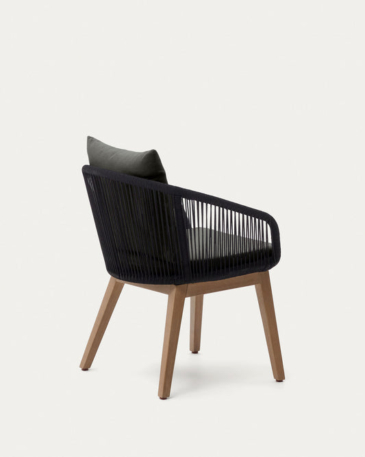 Chaise Portalo en corde noire et pieds en bois d'acacia