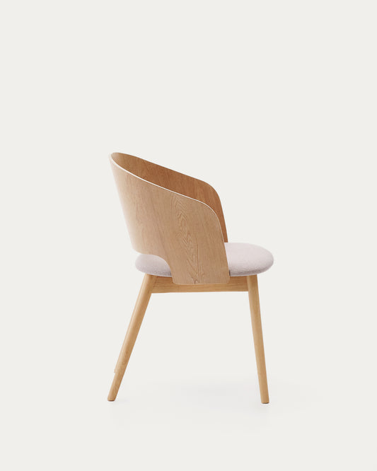 Chaise Senoa en placage frêne et bois d’hévéa finition naturelle et tissu chenille beige