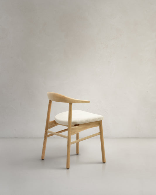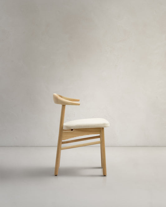 Chaise Timons tissu chenille beige déhoussable bois de chêne finition naturelle FSC Mix Credit