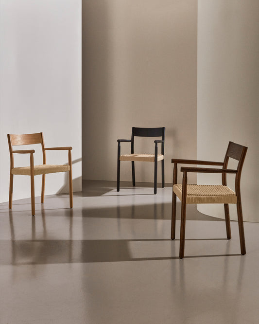 La chaise Yalia est un design artisanal avec une structure en bois en chêne et un siège fait en corde de papier tressée à la main. De plus, il dispose de finitions idéales pour que la nature rentre chez vous.