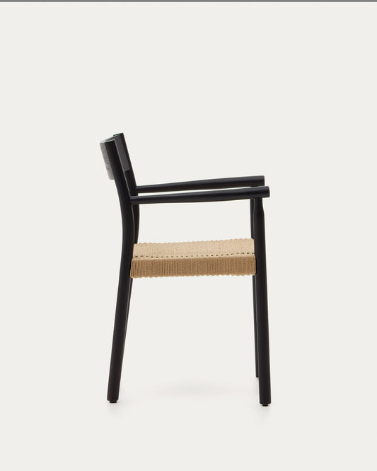 Chaise Yalia en bois de chêne FSC 100% avec finition noire et siège en corde