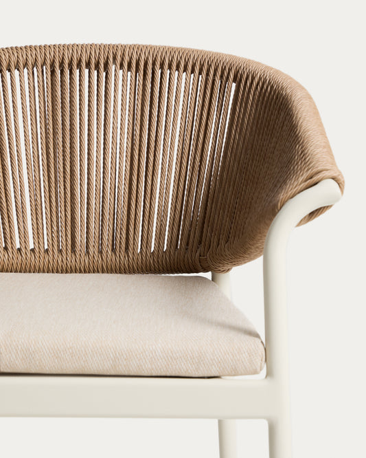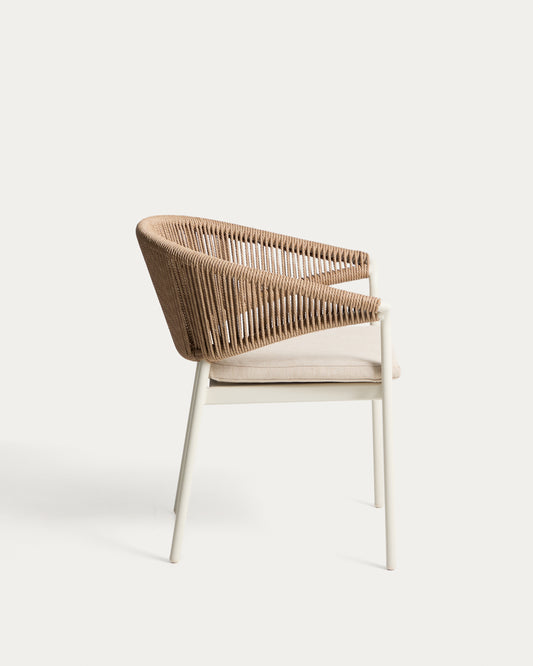 Chaise Zuara en aluminium écru et corde synthétique marron