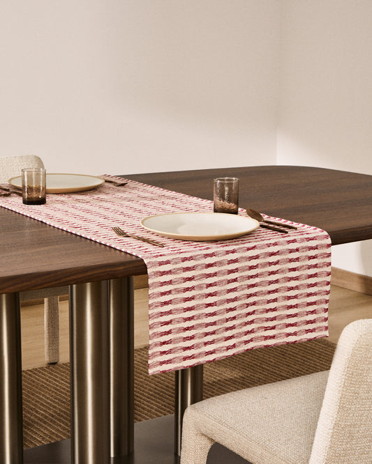 Chemin de table Coren 100 % coton jacquard avec motif contrasté rouge 50 x 150 cm