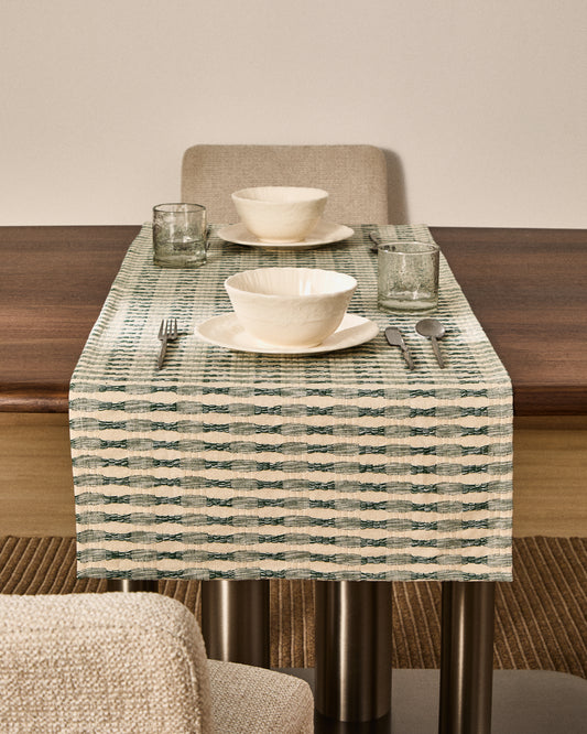 Chemin de table Coren 100 % coton jacquard avec motif contrasté vert 50 x 150 cm