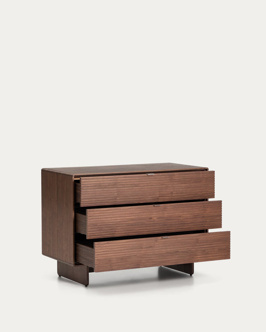 Commode Norlen 3 tiroirs en placage de noyer FSC Mix Credit 101 x 75 cm