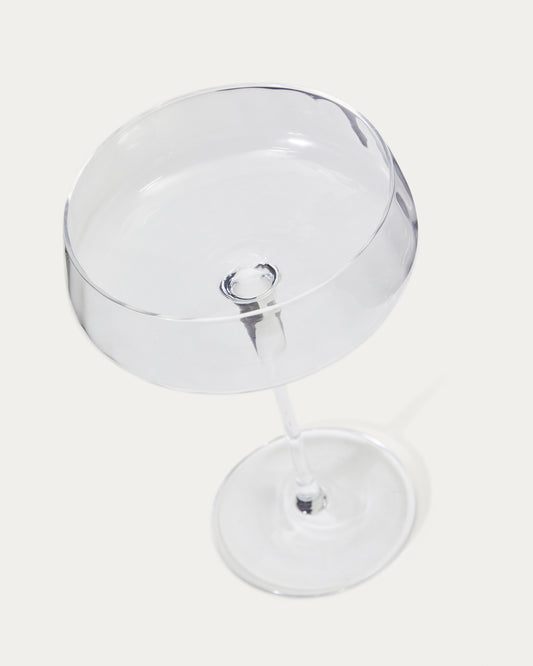 - Coupe en verre transparent de forme arrondie.