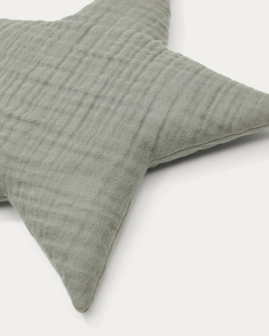 - Coussin en forme d’étoile 100 % coton bio vert.