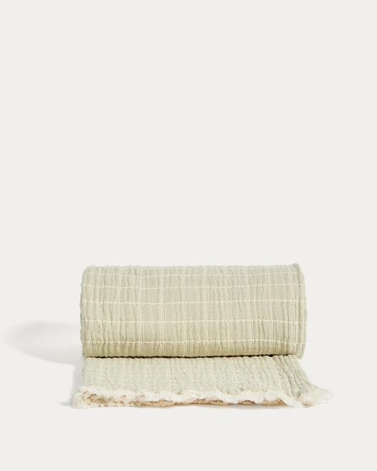 Couverture Tivaro 100 % coton jacquard à carreaux vert clair, réversible 130 x 170 cm
