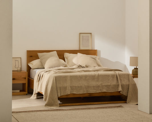 Couvre-lit Tandi 100 % lin beige pour lit de 90/135 cm