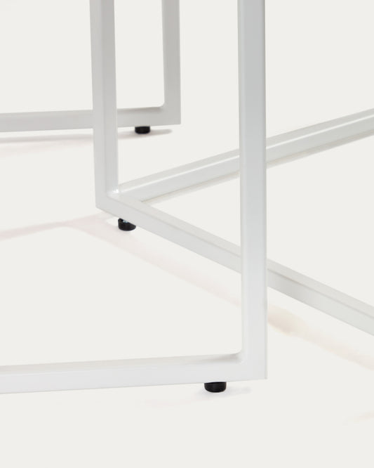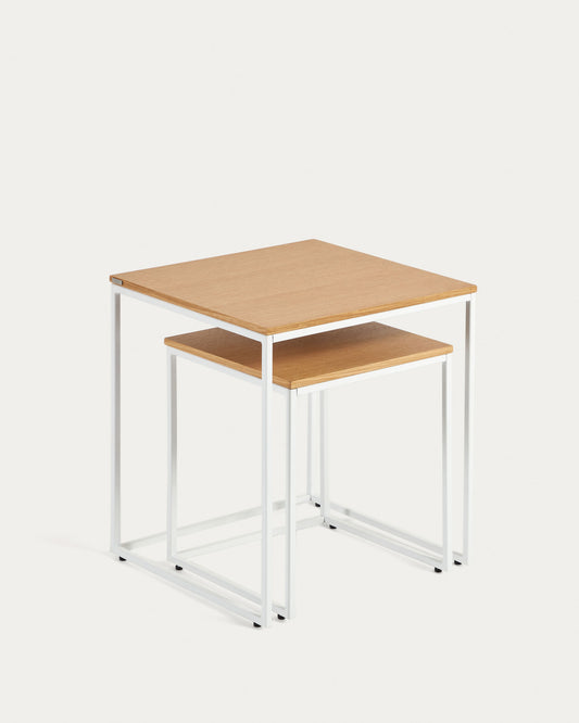 Ensemble 2 tables d'appoint gigognes Yoana en placage de chêne et structure en métal blanc
